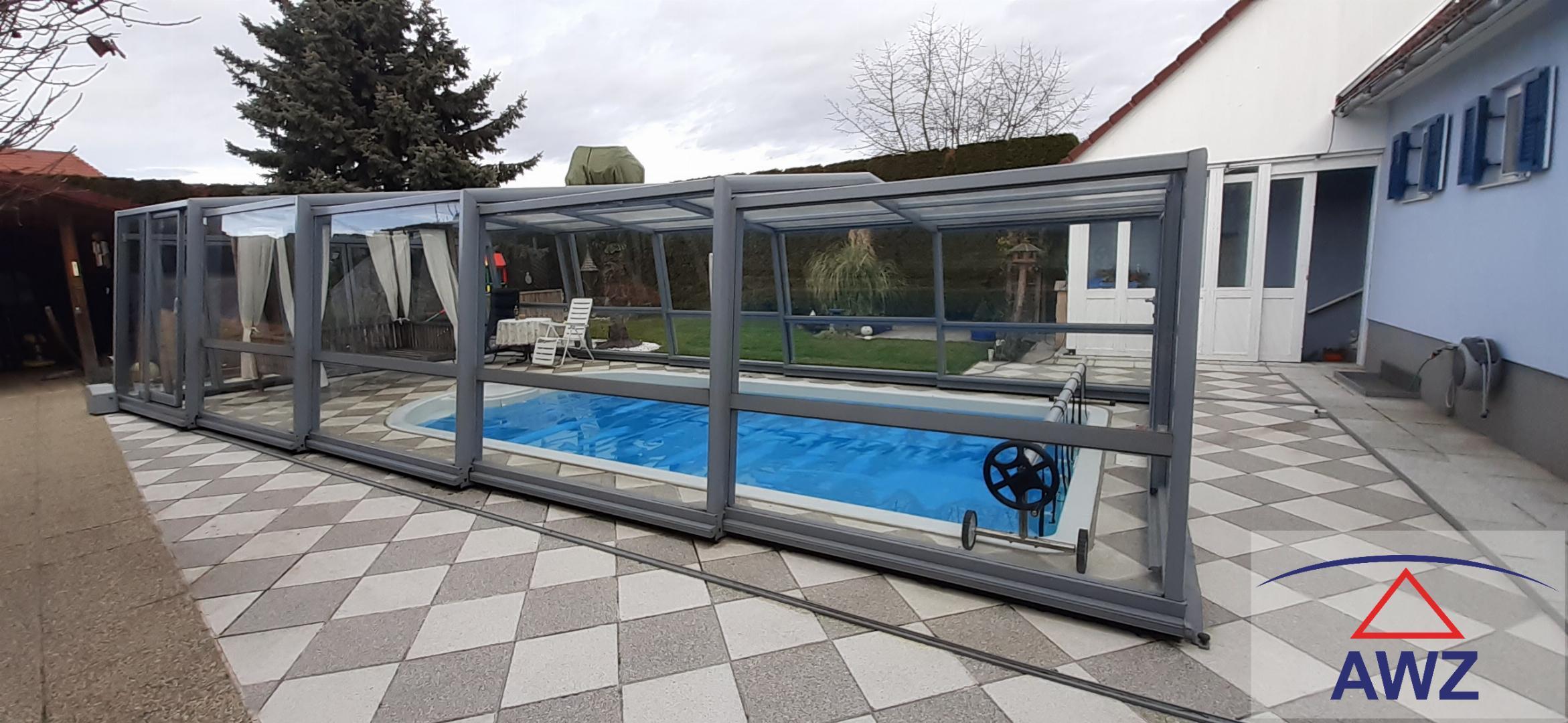 Sehr gepflegtes Einfamilienhaus mit einem überdachten Pool, schönen Garten, Garage usw.